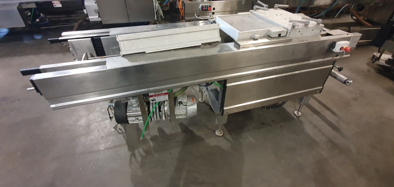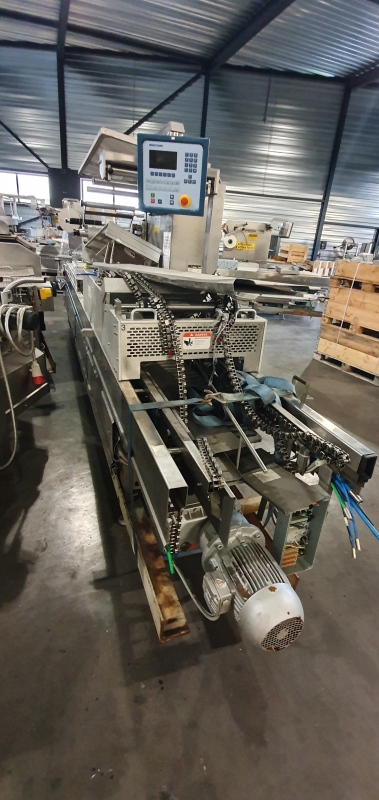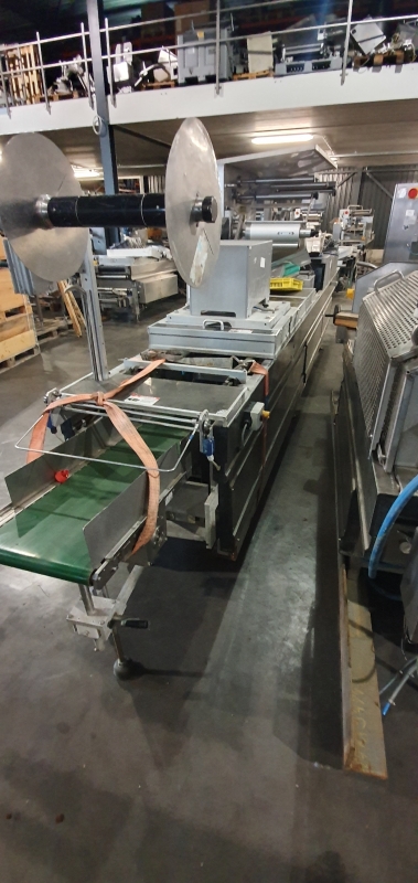 This used Multivac R250 Thermoformer is built in 2005. The machine has a film width of 410mm and there is a dye set on the machine with an exit of 300mm. The format is now divided in a 2.2 format. The machine is equipped with 1 format. This format can be used for Formshrink packaging. The format does not have a stamp. The frame of the machine is currently 8700mm long, but we can always adjust this to the dimension you need.