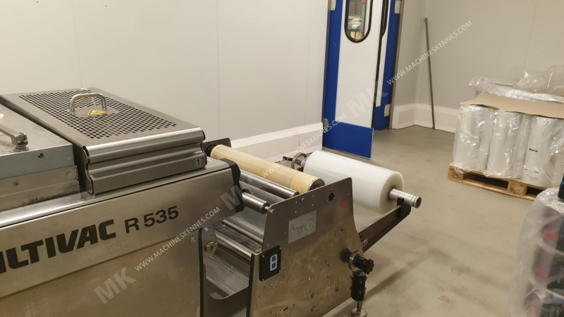 Dieser gebrauchte Multivac R535 Thermoformer Maschine ist in 2015 gebaut. Die Maschine hat eine Filmbreite von 580mm, auf der Maschine ist einem Ausgang von 720 / 660mm jetzt. Das Format wird jetzt in einem 3.3 Format geteilt. Die Maschine ist mit 2 Formate ausgestattet. Diese Formate können für Weich Foilverpackungen verwendet werden. Das Format hat keinen Stempel. Der Rahmen der Maschine ist jetzt 19573mm lang, aber wir können immer dieses an die Abmessung justieren, die Sie benötigen.