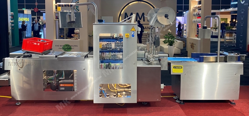 Dieser neue MK Gilze TH1050 Thermoformer Maschine ist in 2025 gebaut. Die Maschine hat eine Filmbreite von 420mm, auf der Maschine ist einem Ausgang von 300mm jetzt. Das Format wird jetzt in einem 3.2 Format geteilt. Die Maschine ist mit 1 Format ausgestattet. Dieses Format kann für Weich Foilverpackungen verwendet werden. Das Format hat keinen Stempel. Der Rahmen der Maschine ist jetzt 3500mm lang, aber wir können immer dieses an die Abmessung justieren, die Sie benötigen.