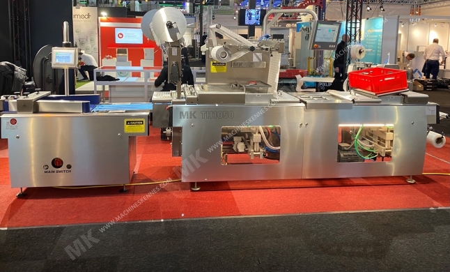This new MK Gilze TH1050 Thermoformer is built in 2025. The machine has a film width of 420mm and there is a dye set on the machine with an exit of 300mm. The format is now divided in a 3.2 format. The machine is equipped with 1 format. This format can be used for Soft Folie packaging. The format does not have a stamp. The frame of the machine is currently 3500mm long, but we can always adjust this to the dimension you need.