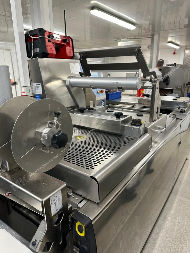 To używane Multivac R085 Termoformierka jest wbudowany 2016. Maszyna ma szerokość filmu wynoszącą 420mm i na maszynie znajduje się zestaw barwników z wyjściem 200mm. Format jest teraz podzielony na a 2.1 format. Maszyna jest wyposażona w 1 format. Ten format może być używany do Miękka i twarda folia opakowanie. Format nie ma znaczek. Rama maszyny jest obecnie 2500mm długości, ale zawsze możemy dostosować to do potrzebnego wymiaru.