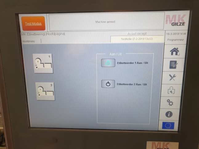 Nos clients nous ont souvent demandé de développer quelque chose pour les anciennes machines à étiquettes MR. Ces machines sont toujours entièrement disponibles sur le plan mécanique et, sur le plan fonctionnel, seul le contrôle a manqué de temps et n'était parfois même pas disponible pour certaines versions. ici, la solution de MK Gilze, nos garçons ont vraiment rendu l'artisanat. il est également possible de l'intégrer dans la commande de la machine d'emballage. Cela facilite la configuration des programmes et des paramètres.